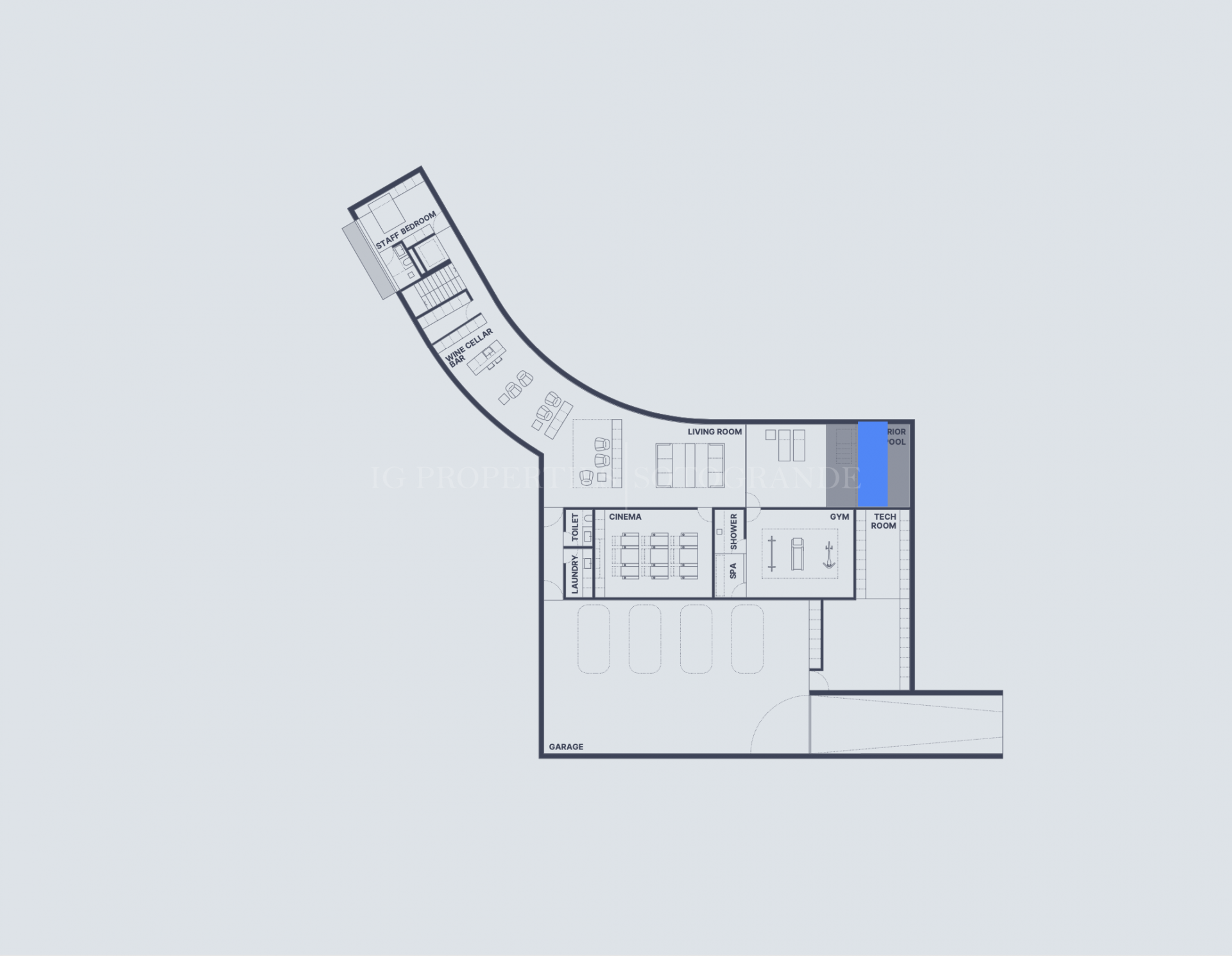 El sótano alberga una piscina interior climatizada, iluminada con sofisticada tecnología LED, que proporciona un espacio cálido y acogedor para el relax en cualquier época del año.