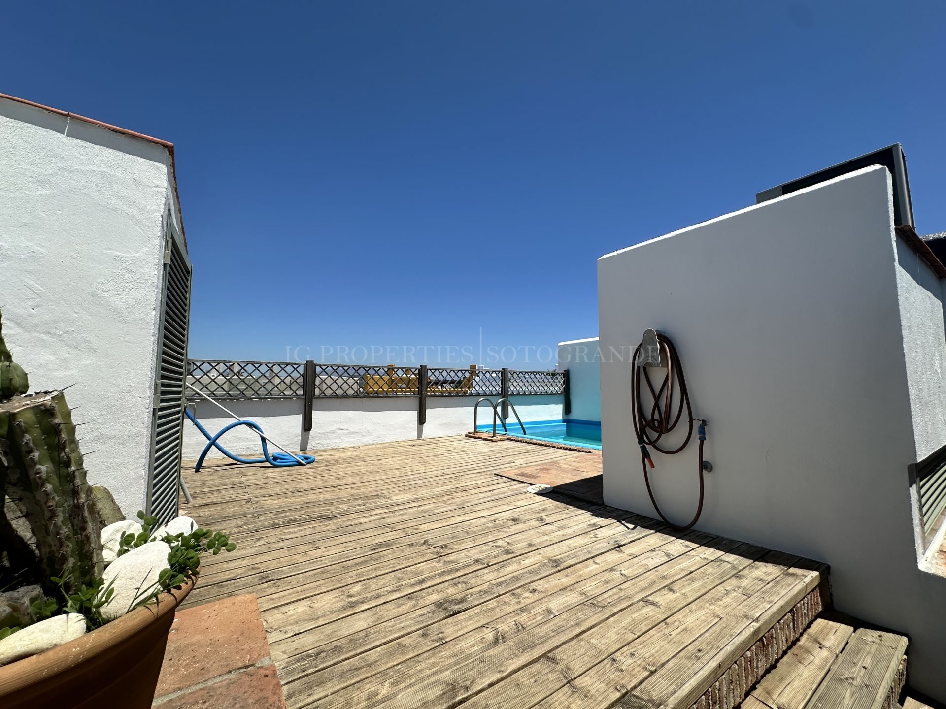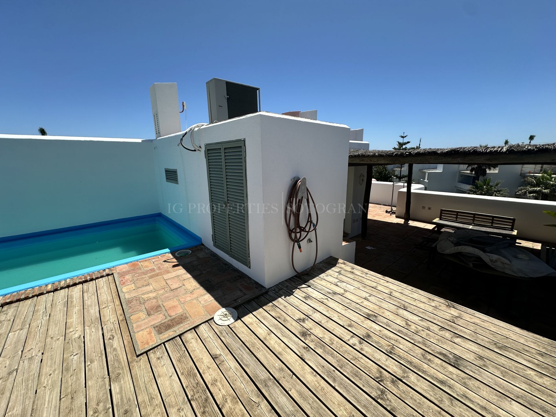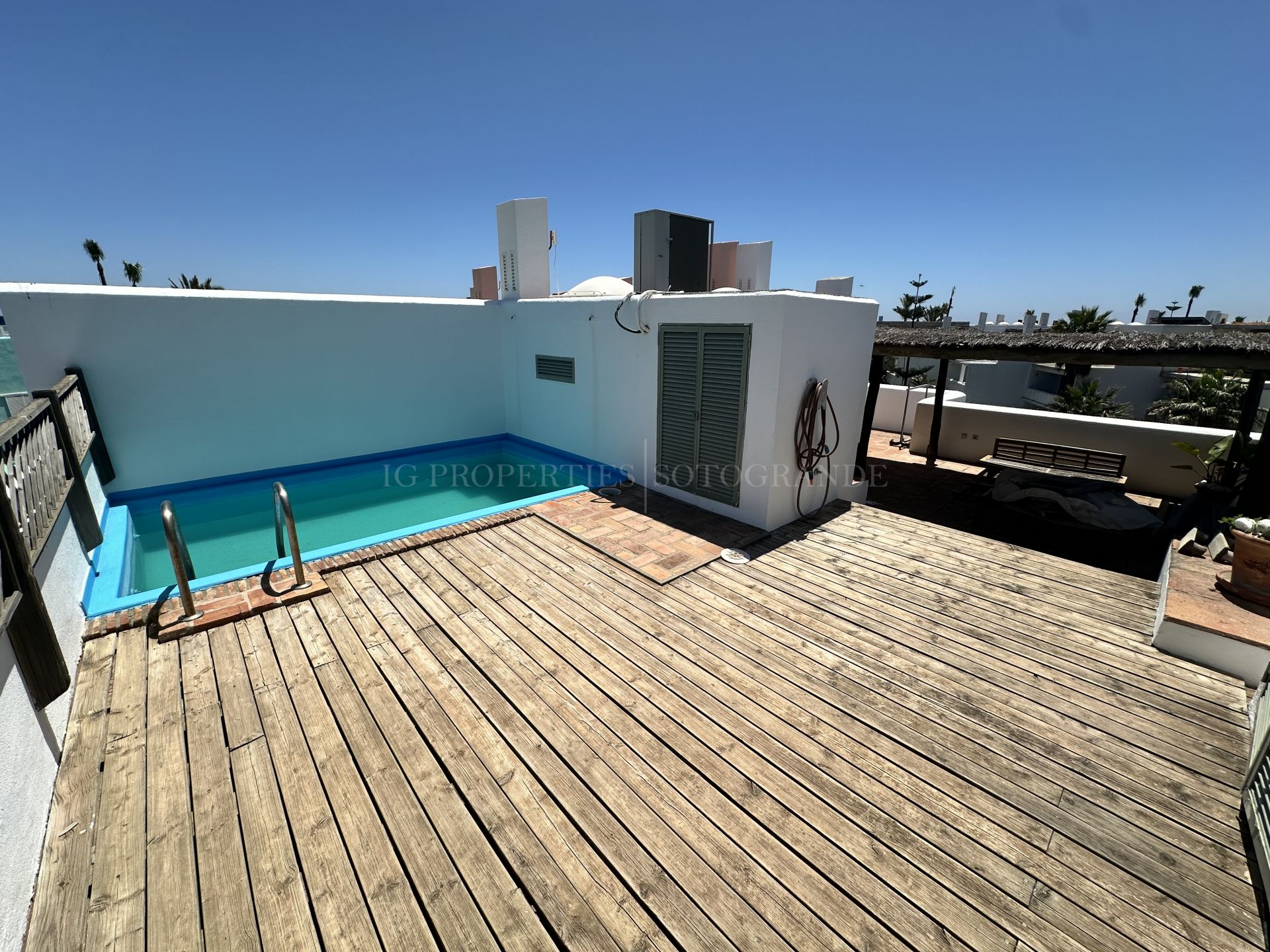 Pareado en Urb. Sotogrande Playa (Los Lacasitos) de 4 dormitorios y vistas parciales al mar desde el dormitorio principal y la terraza, con piscina privada.